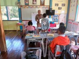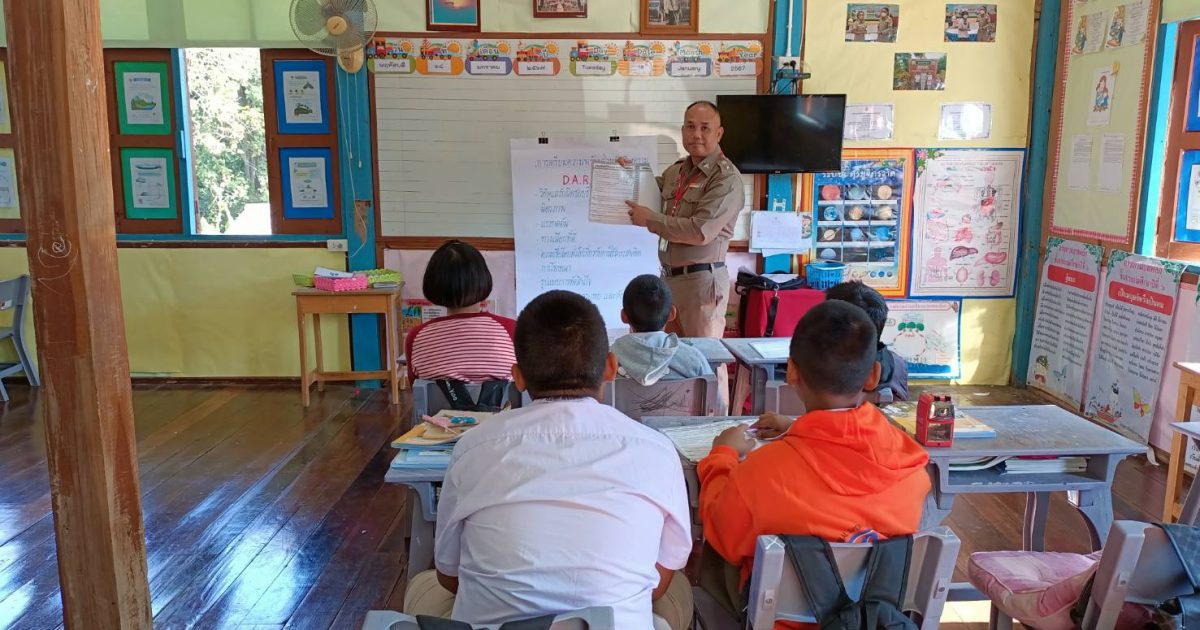 วันที่ 22 ม.ค. 2567 เวลา 09.30-10.30.น. โดย พ.ต.ท.วีรยุทธ อรุณ สวญ. สภ.นาพูน พ.ต.ต.สมพล รัตนะ สวป. สภ.นาพูน มอบหมายให้ ร.ต.อ.พิสุทธิ์ สุทธิ รอง สวป.สภ.นาพูน/ครูตำรวจแดร์ รหัส 23603 ทำการเข้าสอนนักเรียนโรงเรียนบ้านเปาปม หมู่ 7 ต.นาพูน อ.วังชิ้น จ.แพร่ มีนักเรียน ระดับ ป.5 จำนวน 7 คน มาเรียน 5 คน โดยให้ความรู้ตามโครงการการศึกษาเพื่อต่อต้านการใช้ยาเสพติดใน เด็กนักเรียน บทที่ 8 เรื่อง การกระทำของตนเอง