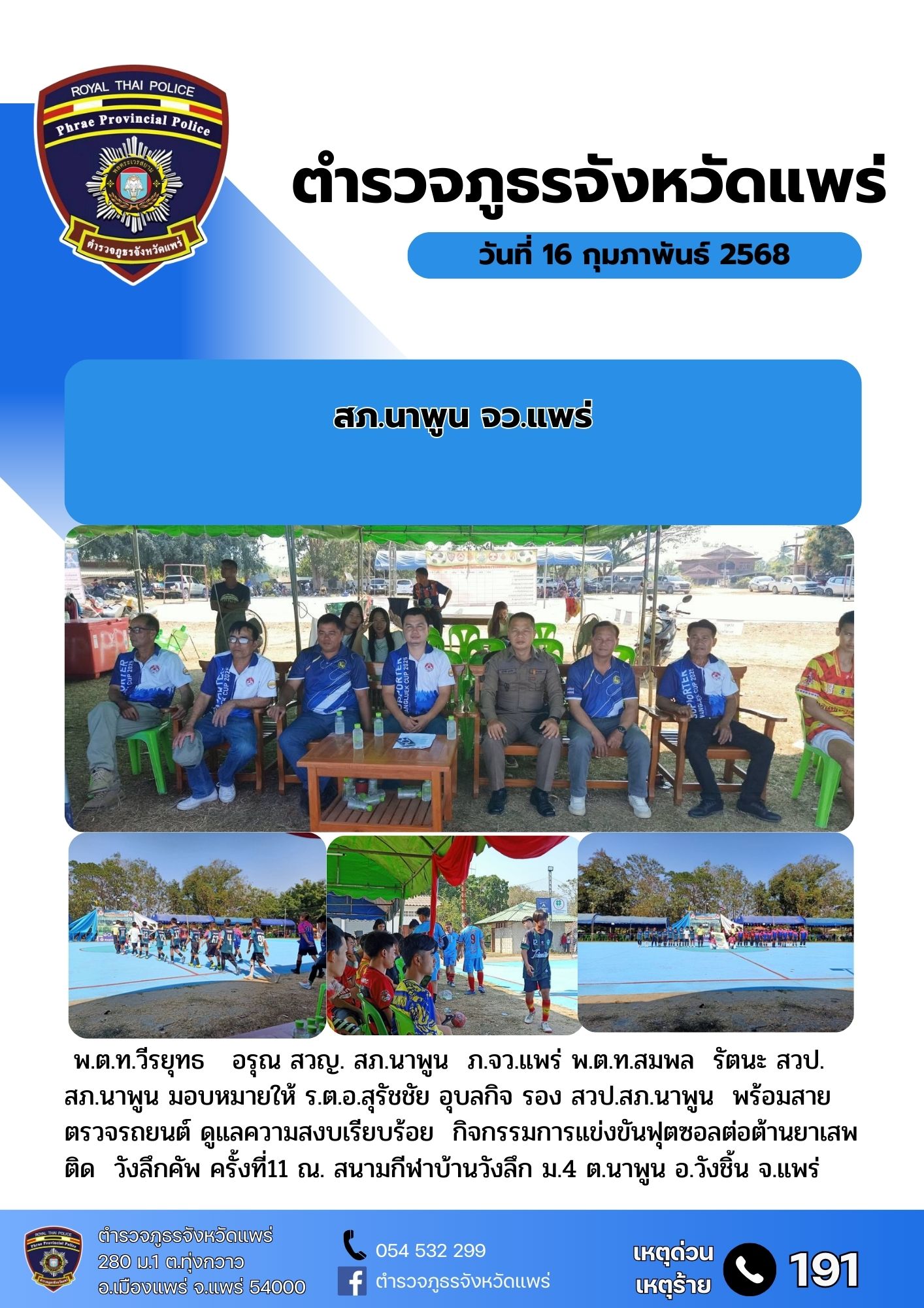 วันที่ 25 ก.พ. 2568 เวลา 08.30 น. พ.ต.ท.ปิยะมิตร บุญนำพา สว.(สอบสวน) สภ.นาพูน เข้าร่วมประชุมกับผู้แทนหน่วยต่างๆ ตามโครงการบรรพชา-อุปสมบท, ประเพณีสักการะพระฤาษี, ประเพณีแห่น้ำช้าง ประจำปี 2568 ของ อบต.นาพูน ณ ห้องประชุมองค์การบริหารส่วนตำบลนาพูน